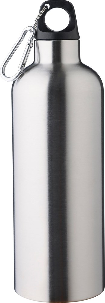 Gourde double paroi de 500 ml en acier inoxydable recyclé (s/s304) matt (sauf silver) bouchon en PP et mousqueton en aluminium, maintien des boissons chaudes pendant 8 heures et froides pendant 12 heures, dans une boîte cadeau en kraft.