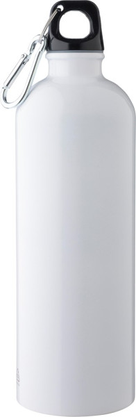 Gourde simple paroi en acier inoxydable recyclé (s/s304) d’une capacité de 750 ml, couvercle en PP et mousqueton en aluminium argenté.