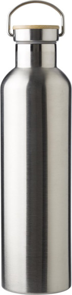 Bouteille double paroi en acier inoxydable d'une contenance de 1 000 ml avec bouchon en bambou....plus