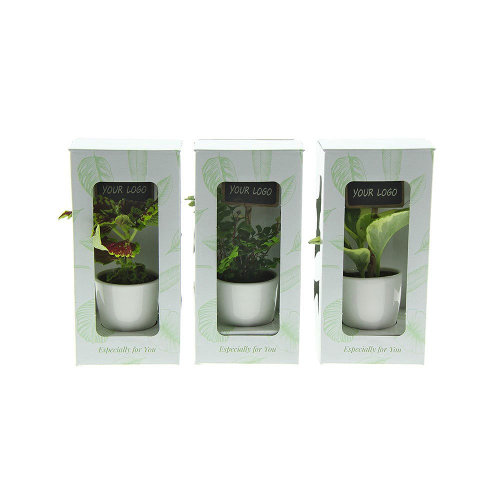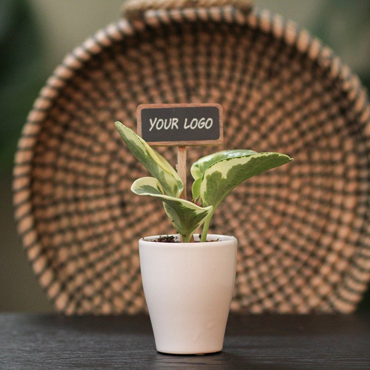 Quelles jolies plantes de bureau, accompagnées d’un marque-plante ChalkNotes® personnalisable à 100 % ! Les ChalkNotes® sont des marqueurs végétaux reconnaissables, mais avec votre logo, message ou nom dessus. La personnalisation est durable : ce qui est imprimé reste visible. Ils apportent une touche originale à nos plantes compactes et durables, et rendent chaque cadeau vert encore plus personnel.