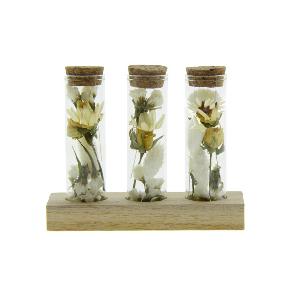 Cette version haut de gamme se compose de trois tubes en verre remplis de fleurs séchées...plus