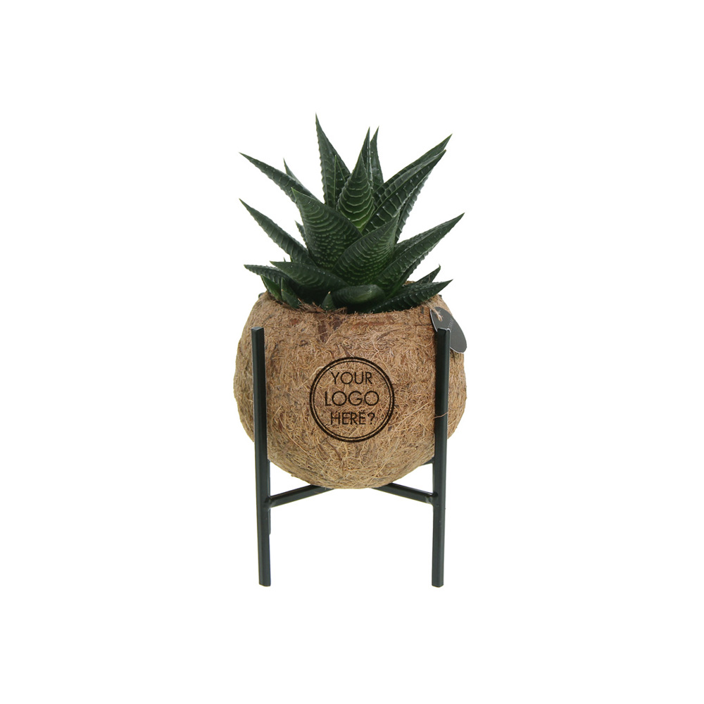 La Kokodama®, une beauté botanique qui ne contient pas de plastique et est 99% naturelle et 100% biodégradable, offre une option unique et durable pour les cadeaux d'entreprise. Sa sphère en fibres de coco crée une maison chaleureuse et écologique pour des plantes tendances et particulières. Suspendue au plafond, posée sur une table ou debout sur le sol, la Kokodama® peut trouver sa place dans n'importe quel intérieur. Fabriquée à la main au Sri Lanka, la Kokodama® contribue à l'économie locale et encourage l'artisanat. Ce mélange Kokodama® contient différentes variétés de plantes grasses, ce qui le rend durable et très facile à entretenir même pour les personnes sans doigt vert.