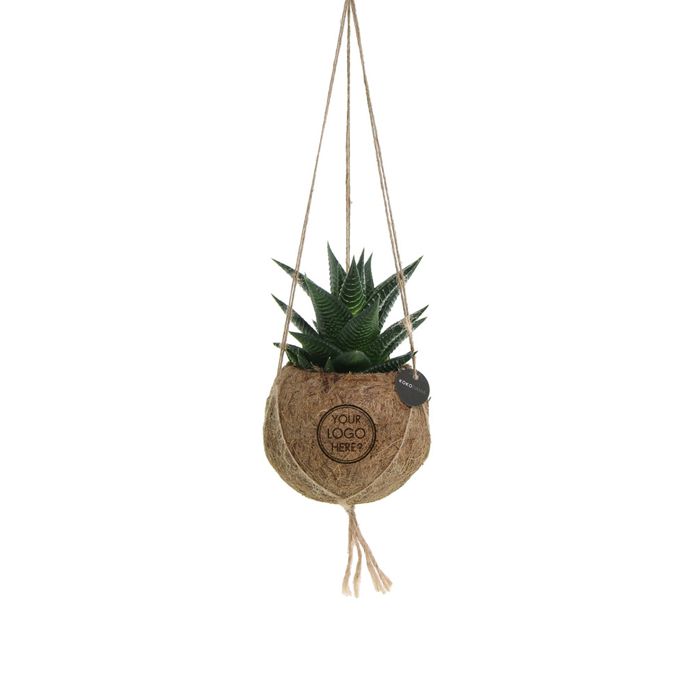 La Kokodama®, une beauté botanique qui ne contient pas de plastique et est 99% naturelle et 100% biodégradable, offre une option unique et durable pour les cadeaux d'entreprise. Sa sphère en fibres de coco crée une maison chaleureuse et écologique pour des plantes tendances et particulières. Suspendue au plafond, posée sur une table ou debout sur le sol, la Kokodama® peut trouver sa place dans n'importe quel intérieur. Fabriquée à la main au Sri Lanka, la Kokodama® contribue à l'économie locale et encourage l'artisanat. Ce mélange Kokodama® contient différentes variétés de plantes grasses, ce qui le rend durable et très facile à entretenir même pour les personnes sans doigt vert.