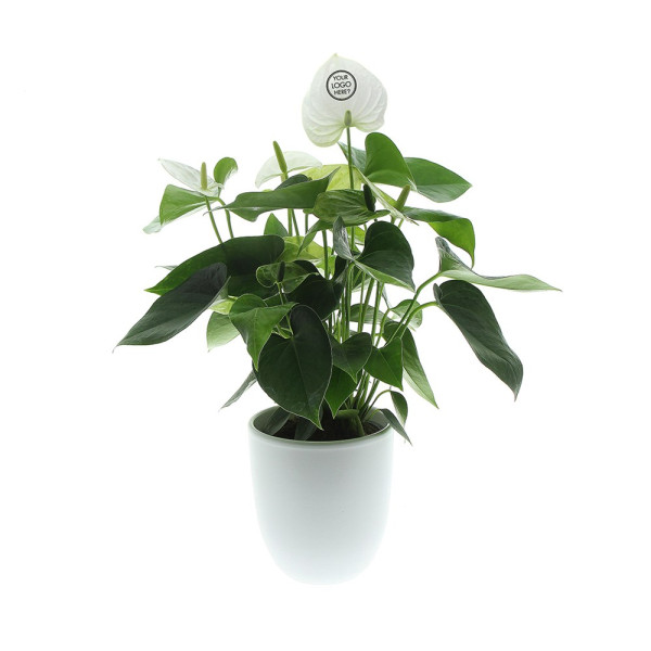 Distinguez-vous avec un cadeau unique : l'Anthurium vivant. Cette plante fleurie remarquable, également connue sous le nom de fleur de flamant rose, est à la fois élégante et purificatrice d’air, et peut être personnalisée avec votre logo, slogan ou message en une seule couleur. Avec les bons soins, un endroit lumineux sans soleil direct et un peu d’eau chaque semaine, cette plante peut fleurir pendant des mois, voire des années. Un cadeau qui attire l'attention et reste visible longtemps. L'emballage cadeau de luxe apporte la touche finale et laisse une impression durable à chaque occasion.