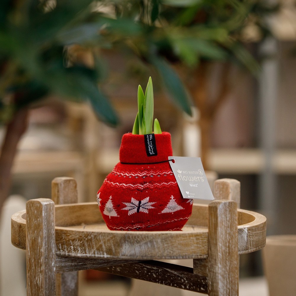 Le No Water Flowers® Fashionz Nordic est un cadeau chaleureux et élégant au style scandinave, parfait comme présent festif de fin d’année. Ces No Water Flowers® sont connus pour leurs bulbes d’amaryllis uniques, faits main et recouverts de cire. Sélectionnés et testés avec soin, ces bulbes contiennent suffisamment d’énergie pour pousser et fleurir sans eau. Les véritables No Water Flowers® produisent des tiges plutôt courtes, restent bien stables et fleurissent à coup sûr. Chaque bulbe est soigneusement nettoyé et ciré à la perfection, ce qui lui donne un aspect moderne et élégant.