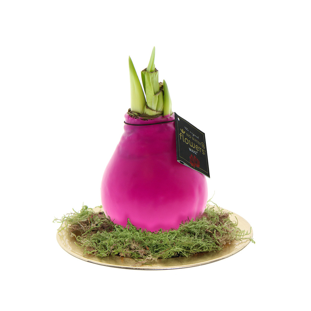 Les No Water Flowers® originales sont facilement reconnaissables grâce à l'étiquette carrée attachée au bulbe. Ces bulbes d'Amaryllis ne nécessitent aucun soin particulier. Placez l'Amaryllis en cire dans un endroit lumineux, mais pas en plein soleil, et profitez des magnifiques fleurs qui se développeront en 3 à 5 semaines. Les bulbes de fleurs sont des produits naturels, chaque bulbe est unique en soi et a une forme différente.
