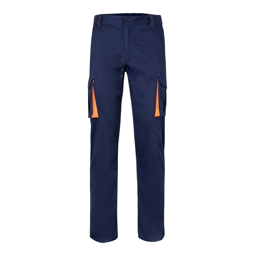 Pantalon stretch bicolore multipoches (240g/m²), en coton (46%), EME (38%) et polyester (16%). Slim Fit, taille élastiquée et couleur contrastée sur les soufflets, les tirettes et les coutures. Contient six poches (2 poches françaises, 2 poches à soufflet latérales et 2 poches à soufflet arrière). Taille: 34, 36, 38, 40, 42, 44, 46, 48, 50, 52, 54, 56, 58, 60