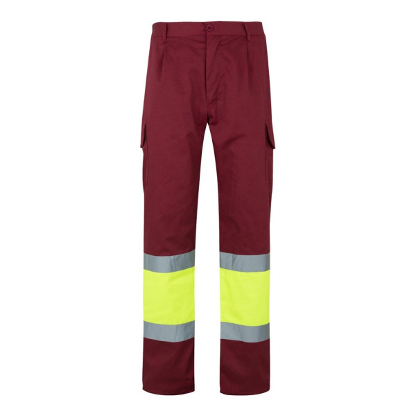 Pantalon en sergé bicolore (210g/m²), doublé, multipoches, en coton (20%) et polyester (80%). Taille élastique, bandes réfléchissantes sur le bas du pantalon. Contient six poches (2 poches françaises, 2 poches latérales à soufflet et 2 poches arrière). Produit conforme au règlement (UE) 2016/425, certifié par EN20471 et classe Nº 1. Taille: S, M, L, XL, 2XL, 3XL