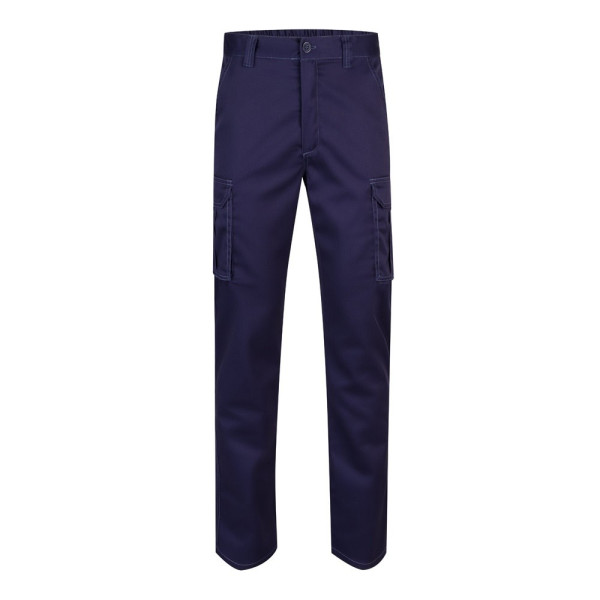Pantalon stretch multipoches (240g/m²) en coton (46%), EME (38%) et polyester (16%). Coupe cintrée, taille élastiquée et six poches (2 poches françaises, 2 poches à soufflet latérales et 2 poches à soufflet arrière). Taille: 34, 36, 38, 40, 42, 44, 46, 48, 50, 52, 54, 56, 58, 60, 62, 64