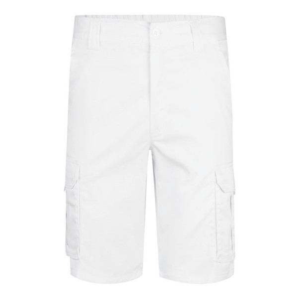 Multi-pocket stretch Bermuda shorts (240g/m²), in cotton (46%), EME (38%) and polyester (16%). With elasticated waistband and six pockets (2 French pockets, 2 side gussets and 2 back pockets). Taille: 34, 36, 38, 40, 42, 44 ,46, 48, 50, 52, 54, 56, 58, 60