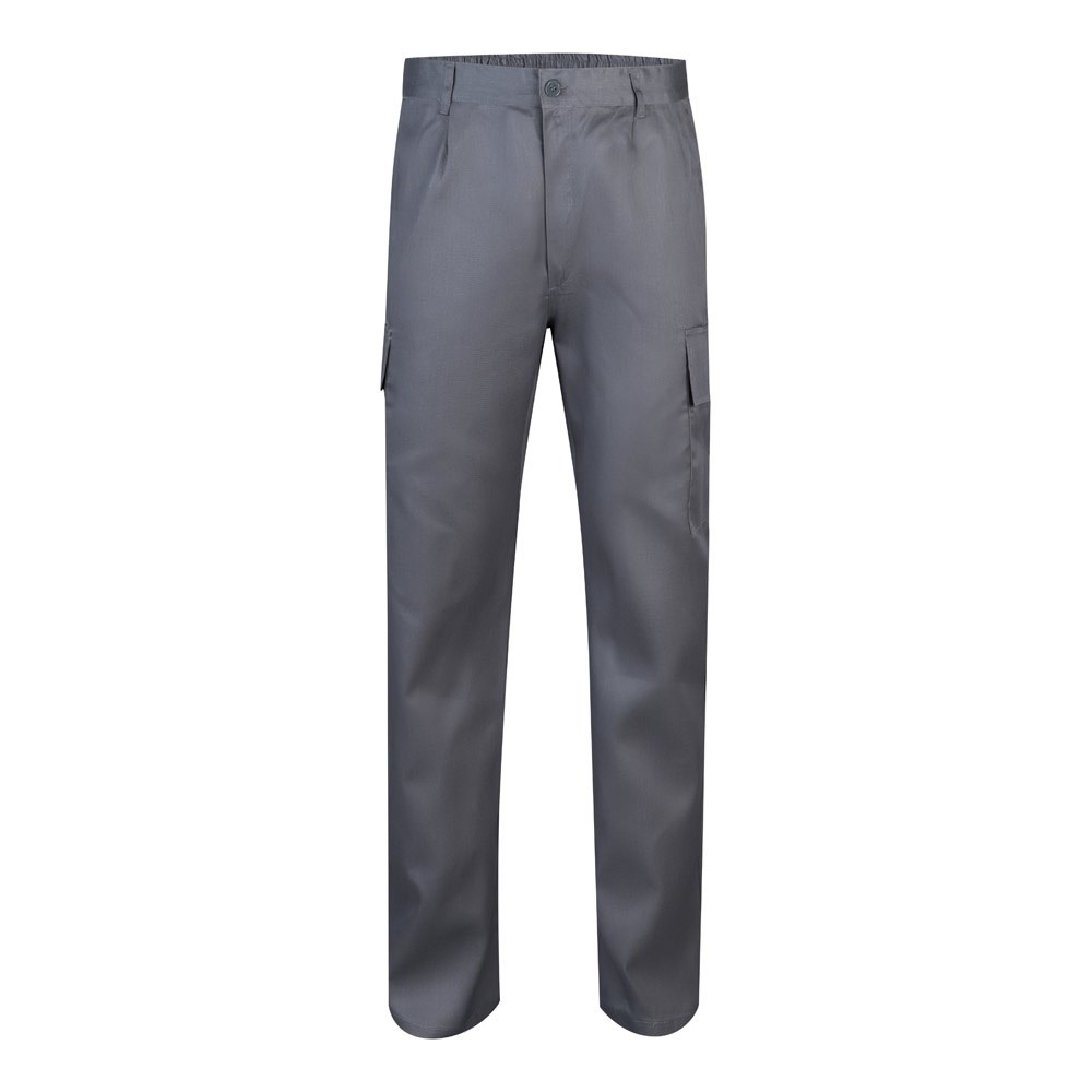 Pantalon multipoches en sergé (190g/m²), en coton (20%) et polyester (80%). Avec ceinture élastiquée et cinq poches (2 poches françaises, 2 poches à soufflet latérales et 2 poches à soufflet arrière). Taille: 36, 38, 40, 42, 44, 46, 48, 50, 52, 54, 56, 58, 60