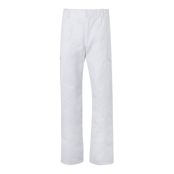 Pantalon multipoches en sergé (200g/m²), en coton (35%) et polyester (65%). Avec ceinture élastiquée et six poches (2 poches françaises, 2 poches à soufflet latérales et 2 poches à soufflet arrière). Taille: 34, 36, 38, 40, 42, 44, 46, 48, 50, 52, 54, 56, 58, 60, 62, 64