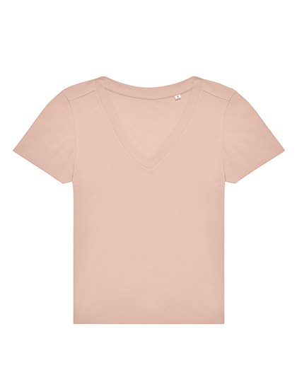 100 % coton ring-spun pré-rétréci | Jersey simple | Coupe classique moderne | Coutures latérales | Col féminin en V | Bande de propreté au dos pour une finition nette | Coutures à l'épaule avancées | Sans étiquette | Matière résistante et douce au toucher