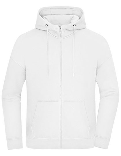 Tissu anti-transpiration de haute qualité, intérieur gratté | Coton biologique peigné ring-spun et polyester recyclé | Avec fermeture éclair sur toute la longueur et capuche | Capuche à double couche avec cordon de serrage | Poche kangourou | Ceinture et poignets en élasthanne