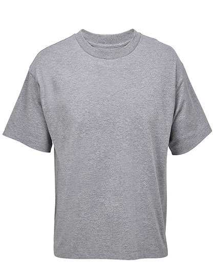 50 % coton recyclé / 50 % coton | Jersey 220 | Col en tricot côtelé 1x1 | Confection tubulaire | Coupe oversize | Épaules tombantes | Bande renforcée sur la nuque et les épaules