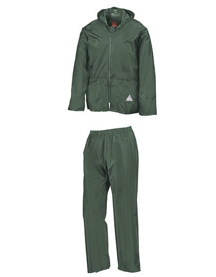 Étanche (2 000 mm) et coupe-vent | Extérieur: Polyester StormDri 2000 recouvert à 100% à 190% | Vêtement lourd, coutures scellées | Sweatshirt à capuche long zip et fermeture auto-agrippante | 2 poches avant et spacieux pour veste 2 poches d'accès au pantalon | Poignets intérieurs coupe-vent, dos en mesh ventilé | Cordon de serrage ajustable au bas du vêtement, ourlet | Taille élastiquée du pantalon | Fermeture à pression ajustable aux chevilles du pantalon | Sac de rangement à fermeture éclair | Triangles de sécurité avant et arrière intégrant des matériaux réfléchissants