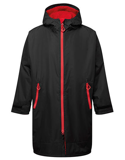 Unisexe | Oversize | Fermeture éclair en plastique double sens sur toute la longueur avec tirettes faciles à utiliser | Protège-menton | Coupe oversize | Aérations latérales | Poignets réglables avec fermeture auto-agrippante | Poches latérales zippées | Poche intérieure zippée sur le côté gauche | Poche intérieure plaquée sur le côté droit | Capuche à 3 panneaux | Boucle au centre du dos de la veste pour suspendre le peignoir | Ourlet arrière tombant | Accès à la broderie au dos, accessible également par cette ouverture | Couche extérieure imperméable avec coutures étanches | Intérieur en polaire sherpa | Sac de transport Rebrandle avec double cordon de serrage