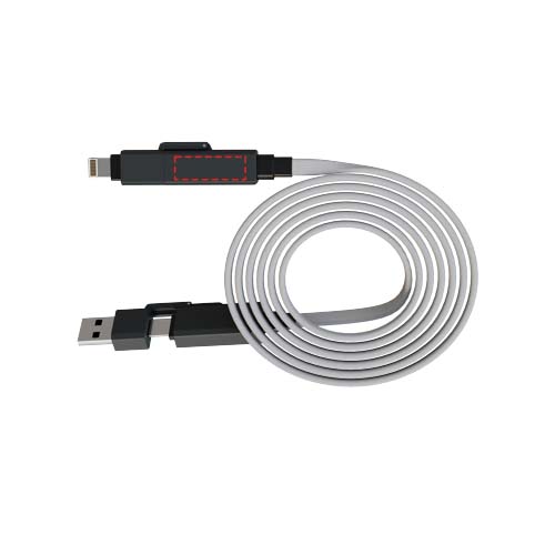 Supersnelle 60W magnetische oplaadkabel die smartphones, tablets en laptops van stroom voorziet. De 1-meter platte kabel heeft Type-C- en Lightning-connectoren, snoeren gemaakt van gerecyclede plastic flessen en duurzame eindkappen van zinklegering. Met dubbele USB-A- en USB-C-ingang is hij 100% compatibel met de nieuwste computermodellen. Volledig compatibel met Apple CarPlay en Android Auto. Personalisatie is mogelijk via lasergravure op de zinken eindkap. Wordt geleverd in een recyclebare TPU-zak met een gerecycled papierinzet.
