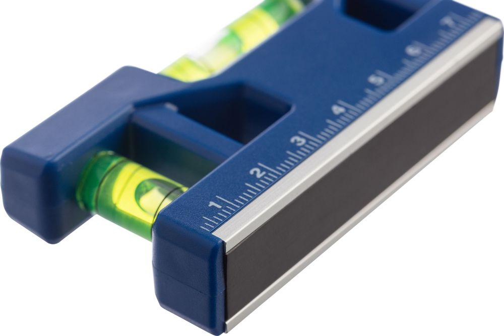Porte-clés niveau à bulle magnétique en ABS recyclé, avec règle sur le dessus. Doté d'une bande...plus
