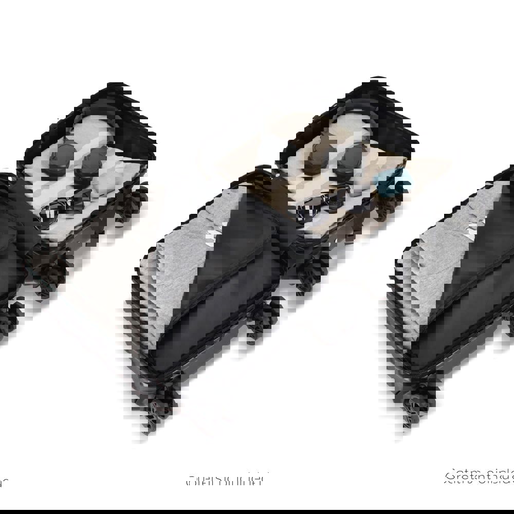 Valise cabine compacte respectant les limites de nombreuses compagnies low cost, se glisse sous le siège. Légère et maniable avec quatre roulettes pivotantes, dotée d’un cadenas à combinaison et d’un support téléphone intégré à la poignée, elle rend l’attente à l’aéroport, en gare ou sur le quai plus agréable.