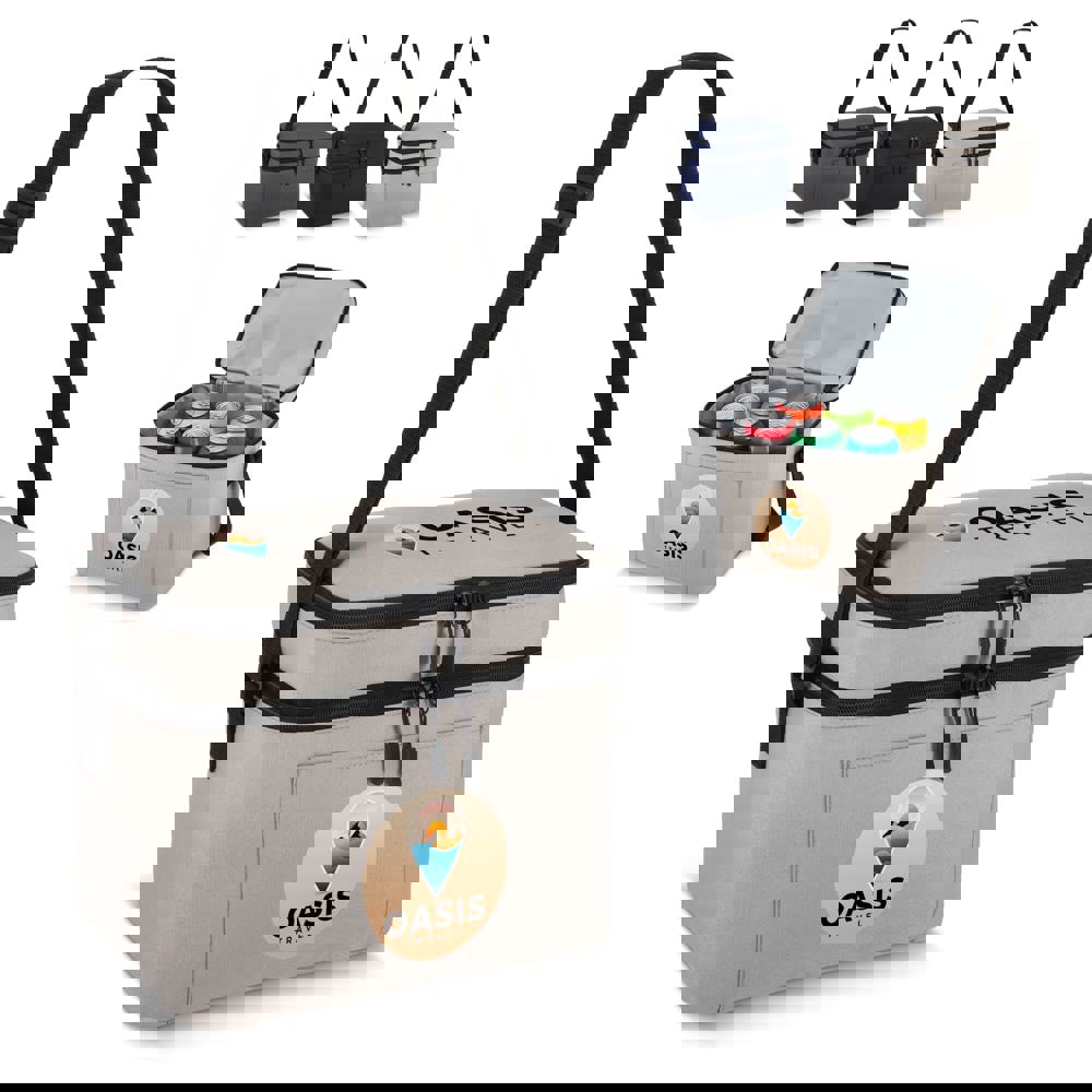 Sac isotherme à double compartiment en R-PET 600D, 30 x 20 x 25 cm, 12 litres.