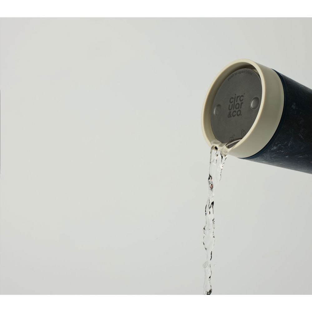 Gobelet à café réutilisable à double paroi et circulaire avec couvercle de Circulair&Co. La couche isolante extérieure de ce gobelet est fabriquée à partir de jeans recyclés. Les jeans indésirables et non réutilisables provenant du Royaume-Uni sont collectés et transformés, grâce à un processus mécanique économe en énergie, en granulés 100% recyclés, sans produits chimiques ni liants nocifs. Ceux-ci constituent 30% de la couche extérieure de ce gobelet, les 70% restants étant composés de plastique recyclé. La paroi intérieure, le couvercle et toutes les parties en contact avec la boisson sont fabriqués à partir de matériaux certifiés (recyclés) adaptés à un usage alimentaire, afin que le gobelet puisse être utilisé en toute sécurité. Grâce à son effet isolant, tes boissons restent chaudes ou froides pendant 60 à 90 minutes. Le couvercle est conçu avec une technologie brevetée à 360 degrés, qui vous permet de boire sous n'importe quel angle. Le gobelet à café s'ouvre et se ferme d'une seule main et d'un seul clic. Avec la nouvelle fermeture Twist trust-lock™. 100% étanche et anti-déversement. Idéal pour les déplacements. 100% recyclable. Passe au lave-vaisselle (à placer dans le panier supérieur). Le lavage à la main est recommandé pour préserver l’impression. Une alternative élégante aux gobelets jetables. Fabriqué au Royaume-Uni. Capacité 227 ml. Emballage par pièce.