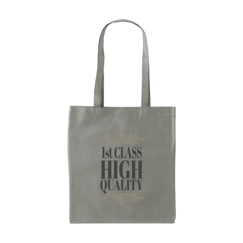 Sac shopping avec de longues anses en non-tissé (80 g/m²) : fibres synthétiques très légères mais solides. Capacité env. 8 litres.