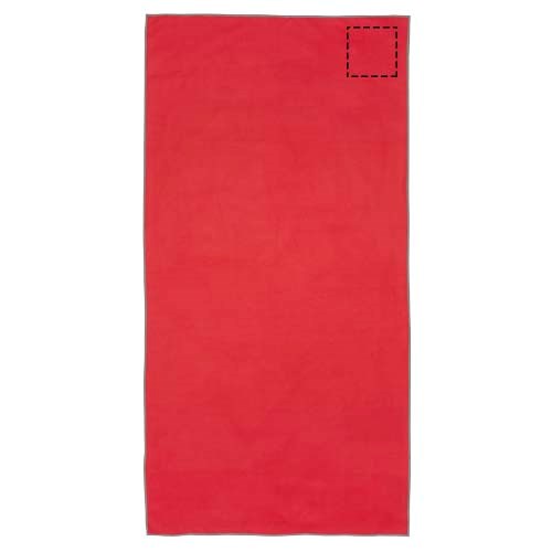 La serviette de sport Pieter absorbe très bien, est légère, sèche rapidement et le tissu est durable et extrêmement doux. Lorsque la serviette est pliée et fixée à l'aide de l'élastique, elle est réduite à une petite taille, ce qui permet de l'emmener à la salle de sport, à la piscine, ou de l'utiliser en randonnée ou en camping. D'une taille de 50 x 100 cm, la serviette est composée à 90 % de polyester recyclé certifié GRS et à 10 % de nylon. Elle peut être lavée en machine à 40 °C. Elle est livrée avec une pochette de rangement (17 x 13 cm) en plastique PET recyclé, qui offre une surface idéale pour l'impression d'un logo.
