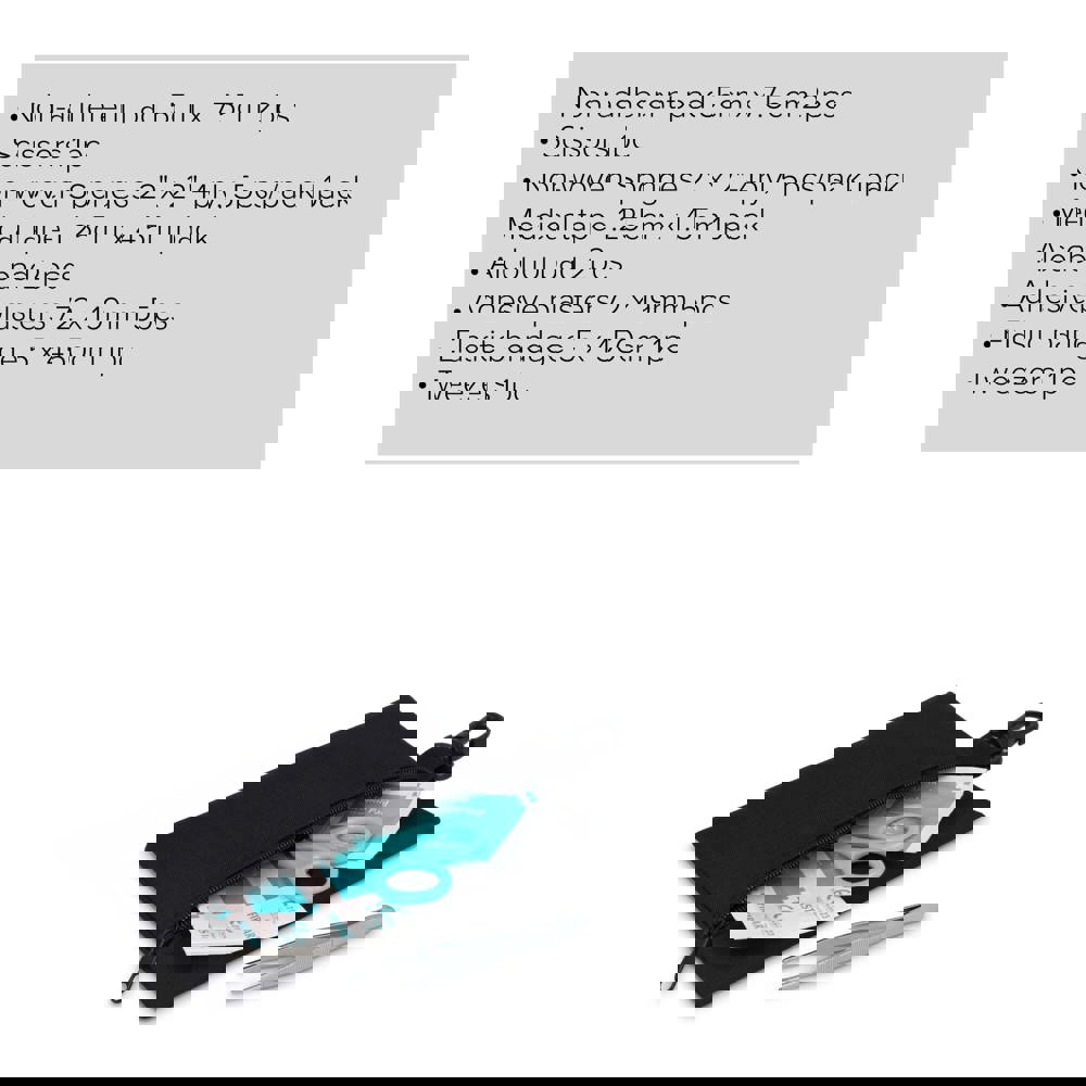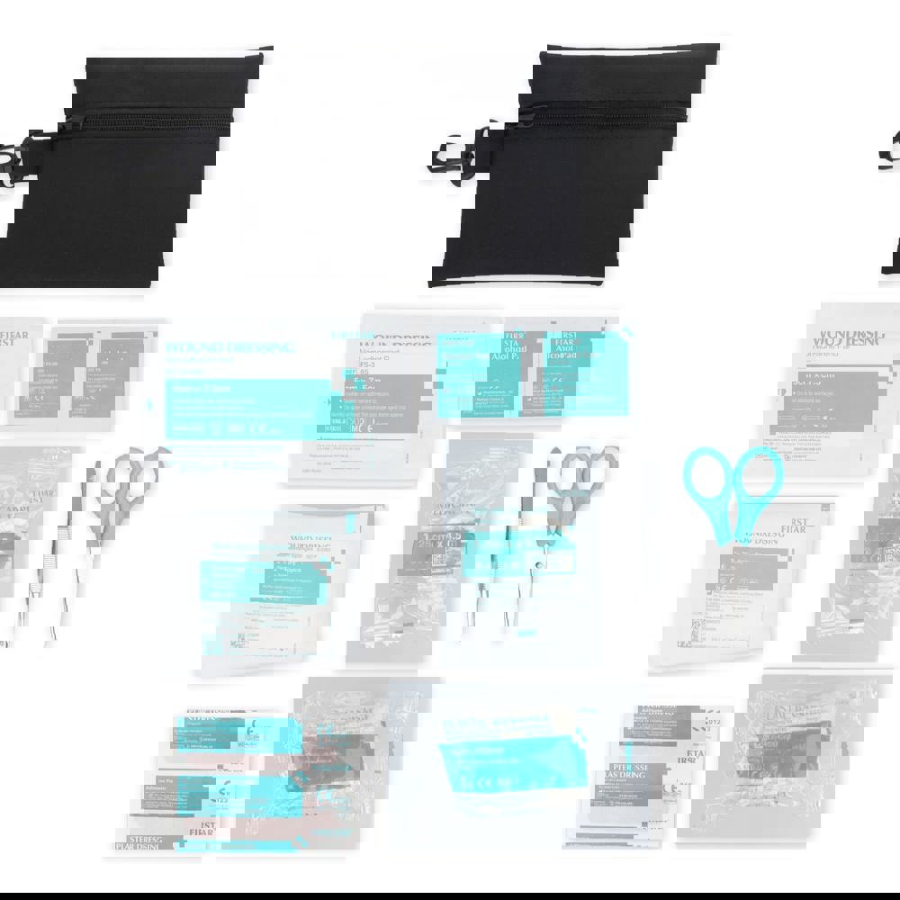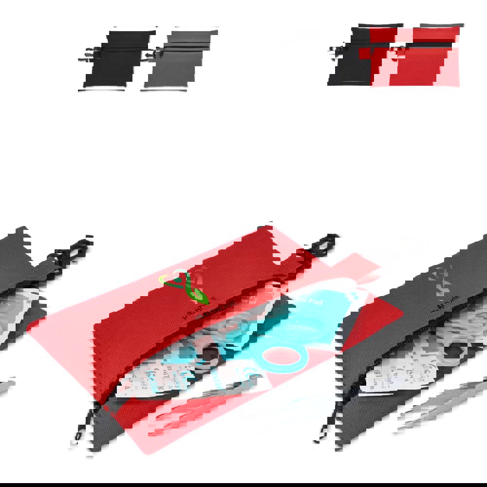 Cette trousse de premiers secours est rangée dans une pochette pratique en polyester 300D avec un mousqueton et est conforme aux normes européennes. Elle est idéale pour les voyages, les activités de plein air, le sport, ou à garder dans la voiture ou le sac à dos pour les petites urgences. Compacte et pratique, elle comprend l'essentiel pour soigner les coupures, les éraflures et les blessures mineures. Contenu : 2 × compresses non adhésives 5 × 7,5 cm, 1 × ciseaux, 1 × paquet de 5 éponges non tissées 2« × 2 » 4 plis, 1 × ruban adhésif médical 1,25 cm × 4,5 m, 2 × tampons alcoolisés, 5 × pansements adhésifs 72 × 19 mm, 1 × bandage élastique en crêpe 5 × 450 cm, 1 × pince à épiler.