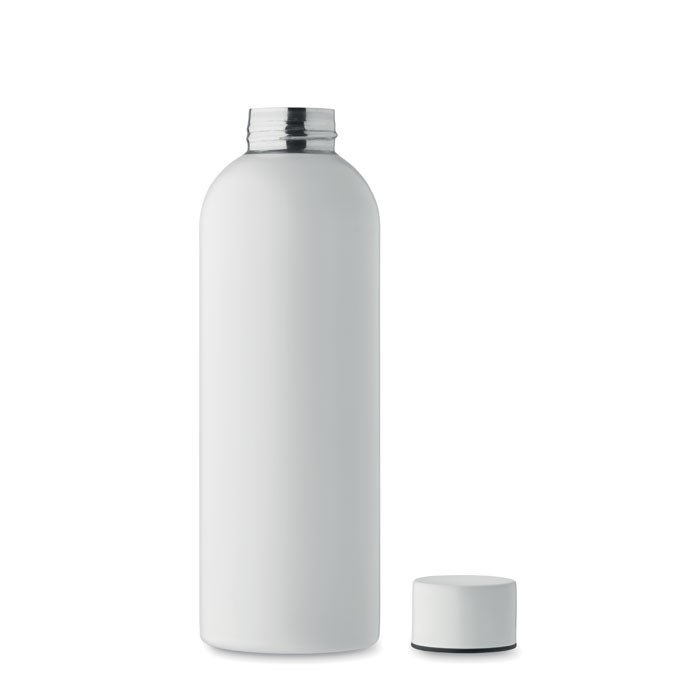 Bouteille à simple paroi en acier inoxydable recyclé (90 % d'acier inoxydable recyclé et 10 % d'acier inoxydable). Anti fuite. Capacité de 750 ml. Comme il s'agit d'un flacon à paroi simple, un transfert de chaleur peut encore se produire.