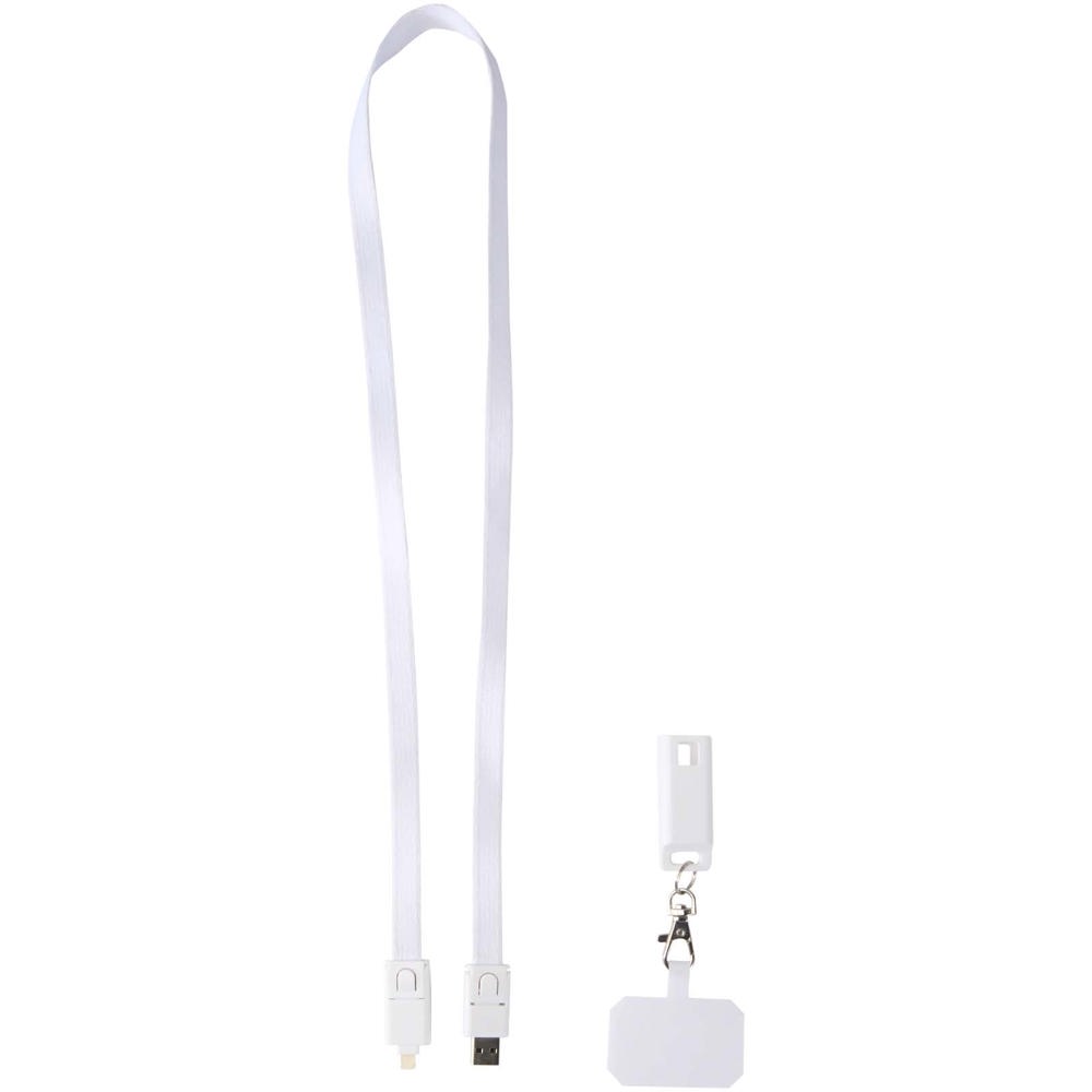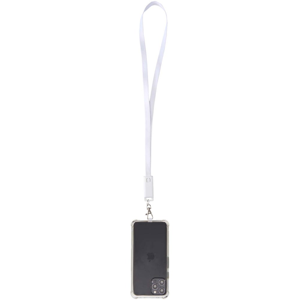 Tour de cou pour smartphone Franz en plastique recyclé avec synchronisation des données intégrée et câble 5 en 1 pour charge rapide de 65 W