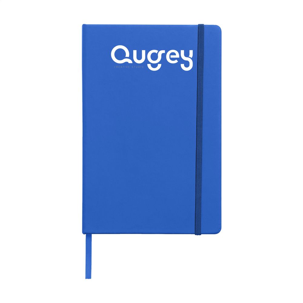 Bloc-notes compact format A5 avec environ 96 feuilles / 192 pages de couleur crème, papier ligné (80 g/m²) certifié FSC Mix. Avec reliure et couverture rigide, fermeture élastique et marque-page ruban en soie.