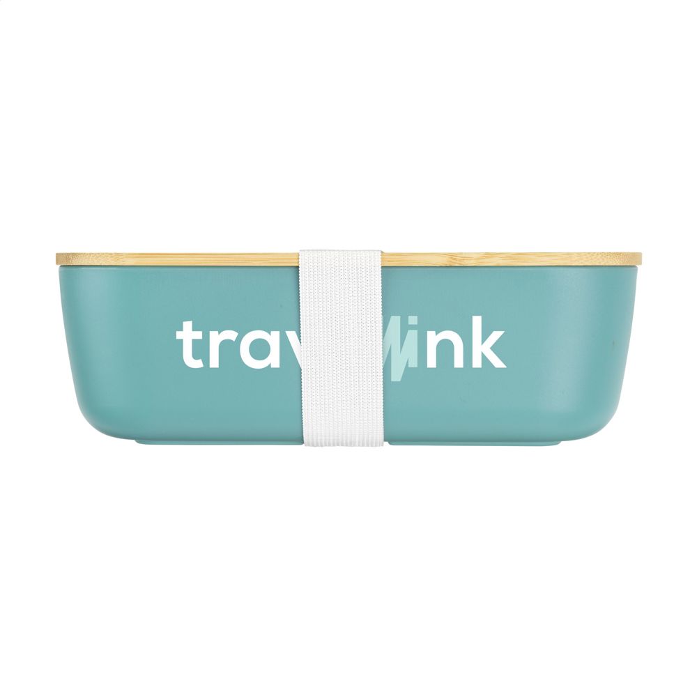 Boîte à lunch grand format en plastique PP. Le couvercle est en bambou naturel. Inclusive une...plus