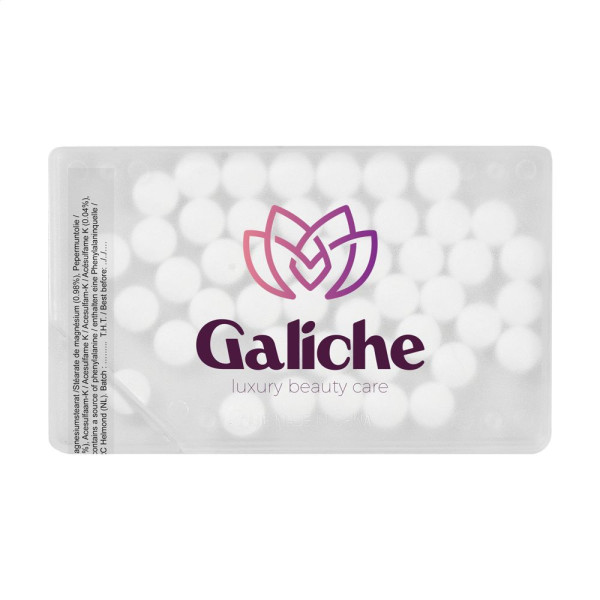 Boîte distributrice avec environ 8 g (50 pcs) de bonbons à la menthe sans sucre.plus