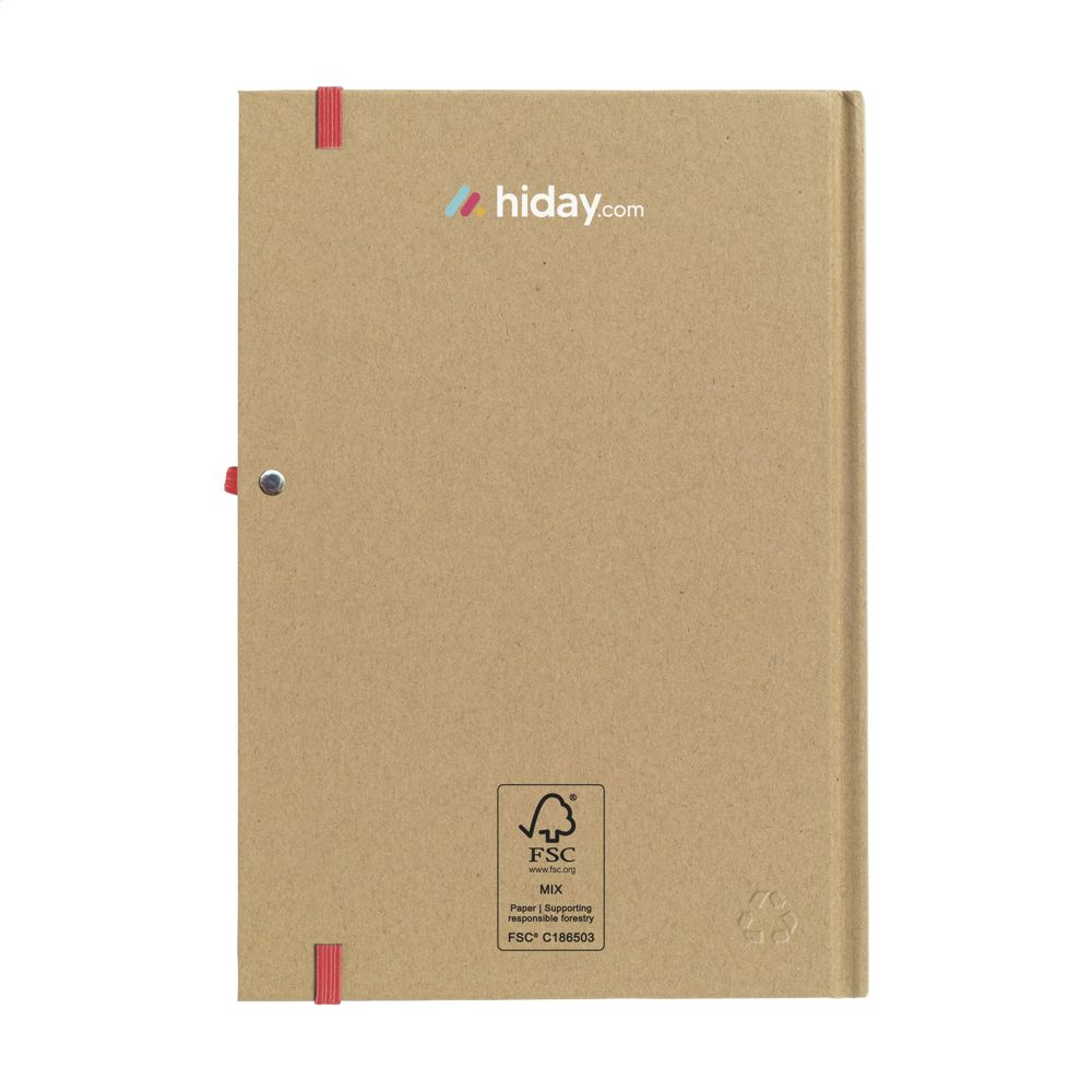 Carnet de notes au format A5, fabriqué à partir de matériaux recyclés. Avec environ 80 feuilles /160 pages de papier (80 g/m²) couleur crème, ligné et certifié FSC Mix. Muni d'une boucle à stylo pratique et une fermeture par élastique.