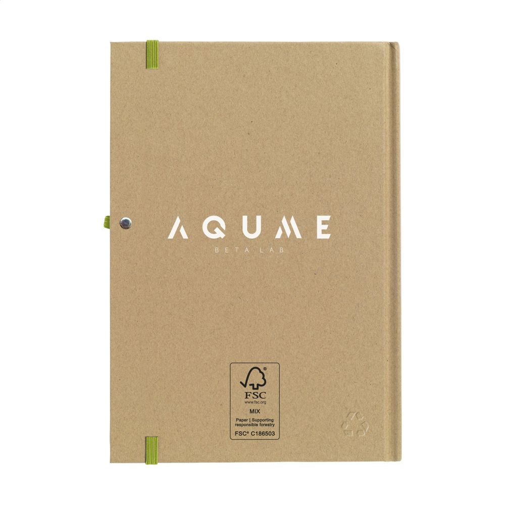 Carnet de notes au format A5, fabriqué à partir de matériaux recyclés. Avec environ 80 feuilles /160 pages de papier (80 g/m²) couleur crème, ligné et certifié FSC Mix. Muni d'une boucle à stylo pratique et une fermeture par élastique.