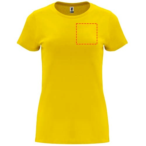 T-shirt ajusté à manches courtes pour femme. Col rond côtelé 1x1. Coutures recouvertes renforcées au col. Étiquette détachable.