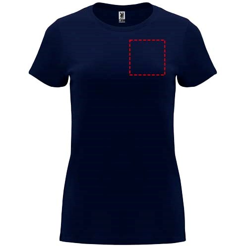 T-shirt ajusté à manches courtes pour femme. Col rond côtelé 1x1. Coutures recouvertes renforcées au col. Étiquette détachable.