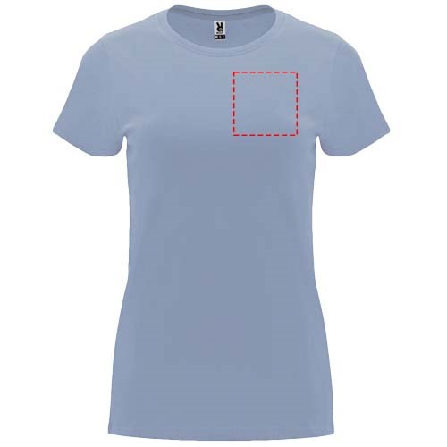 T-shirt ajusté à manches courtes pour femme. Col rond côtelé 1x1. Coutures recouvertes renforcées au col. Étiquette détachable.