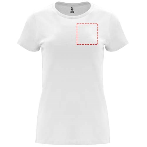 T-shirt ajusté à manches courtes pour femme. Col rond côtelé 1x1. Coutures recouvertes renforcées au col. Étiquette détachable.