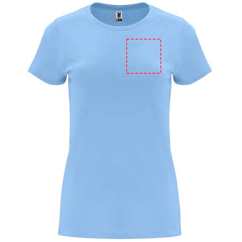 T-shirt ajusté à manches courtes pour femme. Col rond côtelé 1x1. Coutures recouvertes renforcées au col. Étiquette détachable.