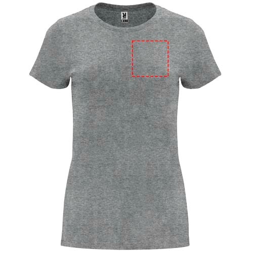T-shirt ajusté à manches courtes pour femme. Col rond côtelé 1x1. Coutures recouvertes renforcées au col. Étiquette détachable.