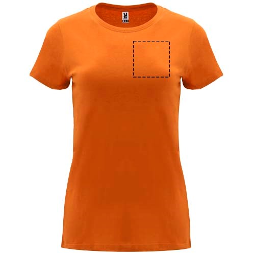 T-shirt ajusté à manches courtes pour femme. Col rond côtelé 1x1. Coutures recouvertes renforcées au col. Étiquette détachable.