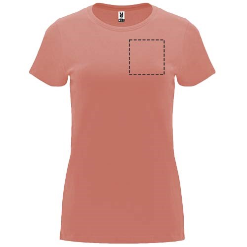 T-shirt ajusté à manches courtes pour femme. Col rond côtelé 1x1. Coutures recouvertes renforcées au col. Étiquette détachable.