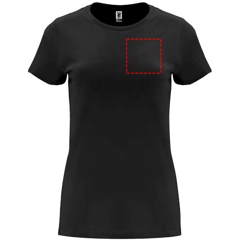T-shirt ajusté à manches courtes pour femme. Col rond côtelé 1x1. Coutures recouvertes renforcées au col. Étiquette détachable.