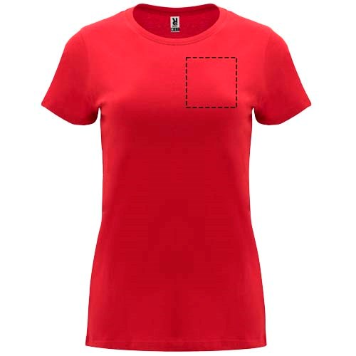 T-shirt ajusté à manches courtes pour femme. Col rond côtelé 1x1. Coutures recouvertes renforcées au col. Étiquette détachable.