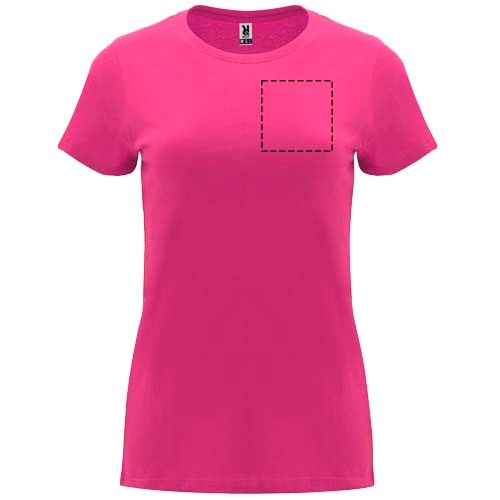 T-shirt ajusté à manches courtes pour femme. Col rond côtelé 1x1. Coutures recouvertes renforcées au col. Étiquette détachable.