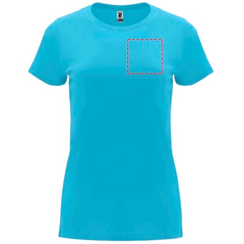 T-shirt ajusté à manches courtes pour femme. Col rond côtelé 1x1. Coutures recouvertes renforcées au col. Étiquette détachable.