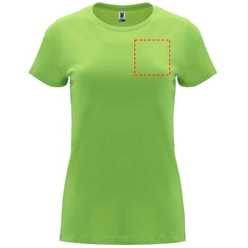 T-shirt ajusté à manches courtes pour femme. Col rond côtelé 1x1. Coutures recouvertes renforcées au col. Étiquette détachable.