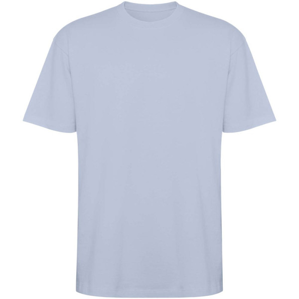 T-shirt à manches courtes oversize. Col rond bordé d'une côte 2x1 avec couvre-coutures assortis. Coutures latérales. Double piqûre large sur les manches et l'ourlet. Étiquette détachable.